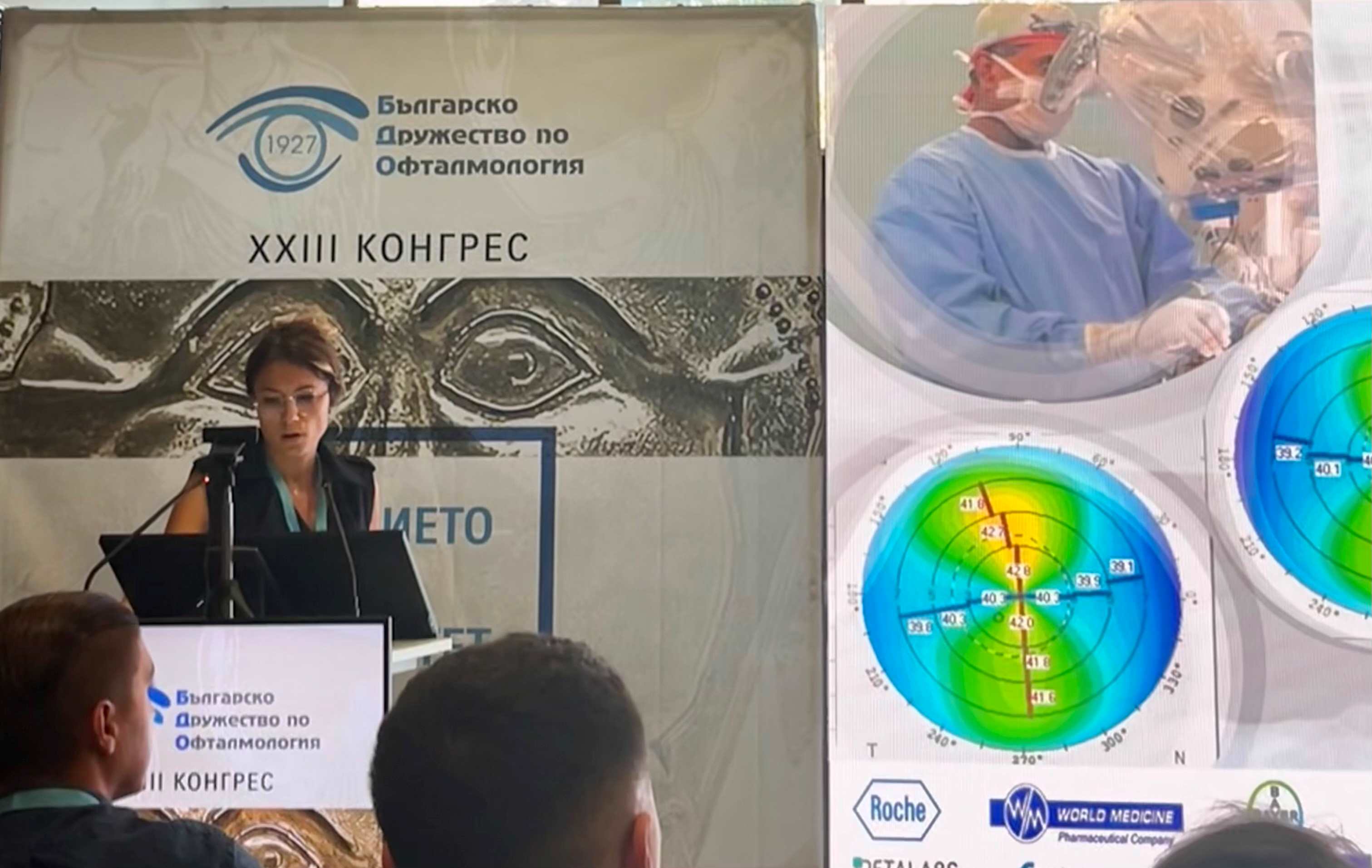 Доц. д-р Младена Радева, д.м.  от същата катедра представи първите резултати от приложението на лазерната процедура Relex SMILE в УСБОБАЛ Варна, като обсъди възможностите, предимствата и ограниченията, свързани с прилагането ѝ.